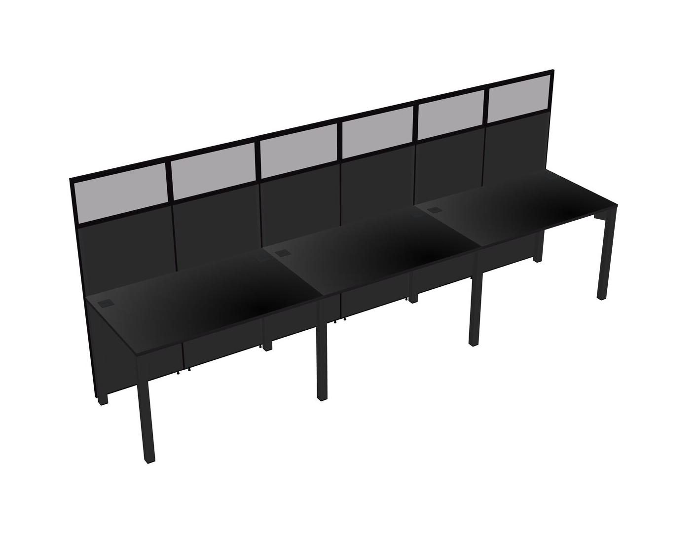 Black Shared Rectangular Office Cubicle Panel System For 3 Persons