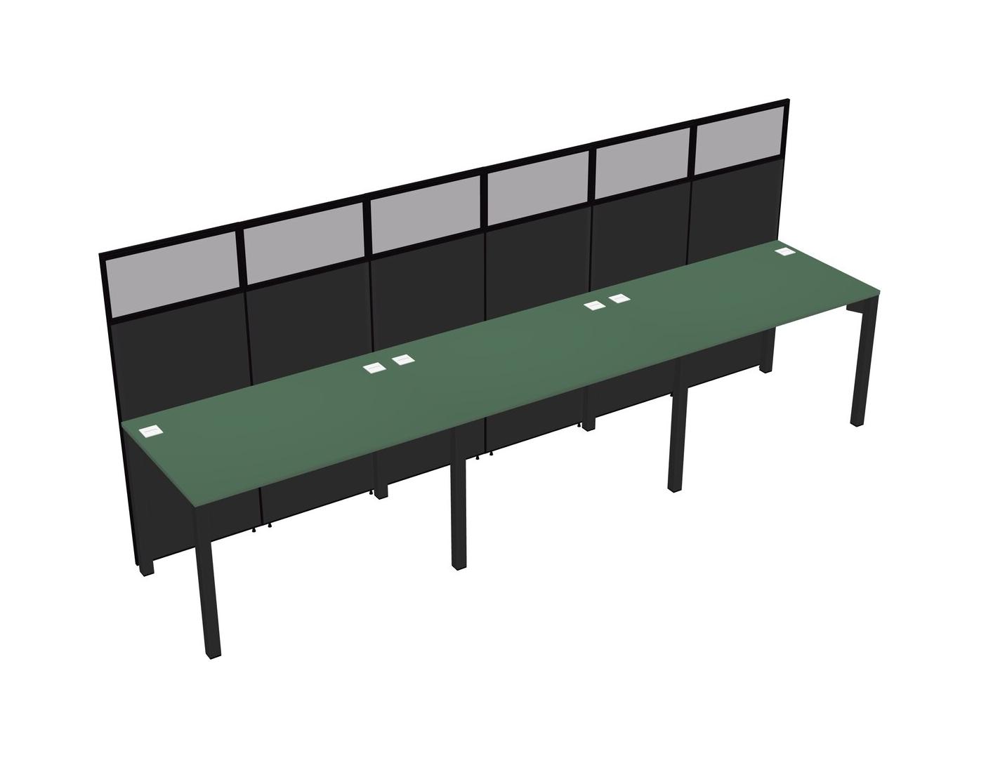 Green Shared Rectangular Office Cubicle Panel System For 3 Persons