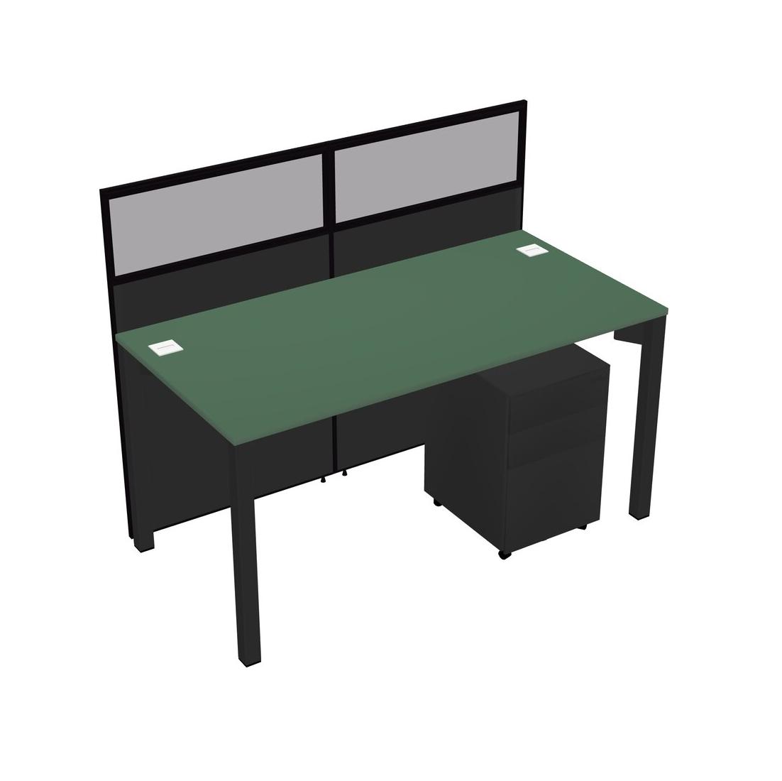Green Shared Rectangular Office Cubicle Panel System With Mobile Drawers For 1 Persons