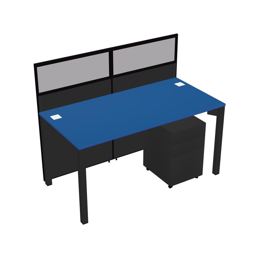 Prism Blue Shared Rectangular Office Cubicle Panel System With Mobile Drawers For 1 Persons