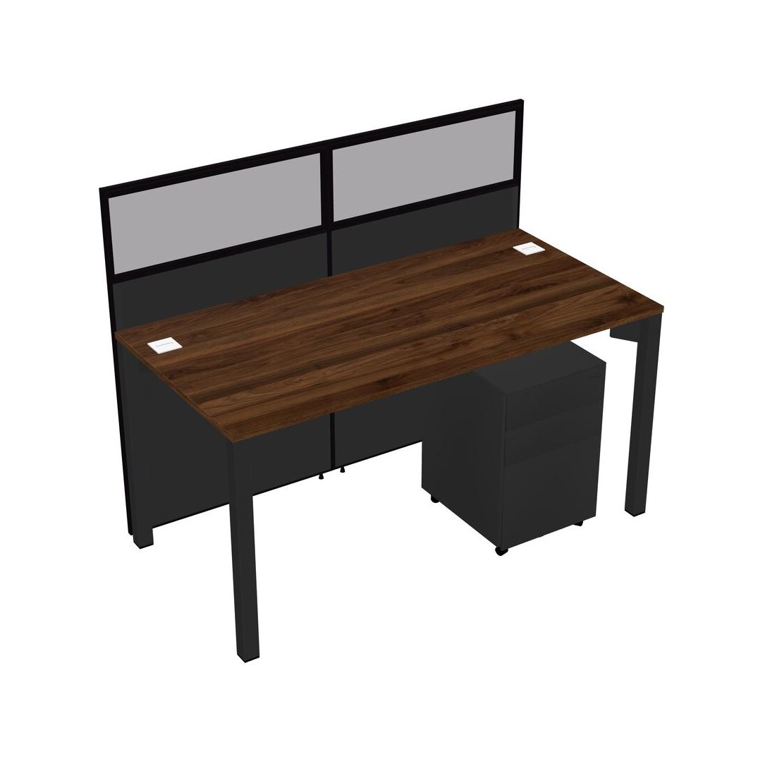 Columbia Walnut Shared Rectangular Office Cubicle Panel System With Mobile Drawers For 1 Persons