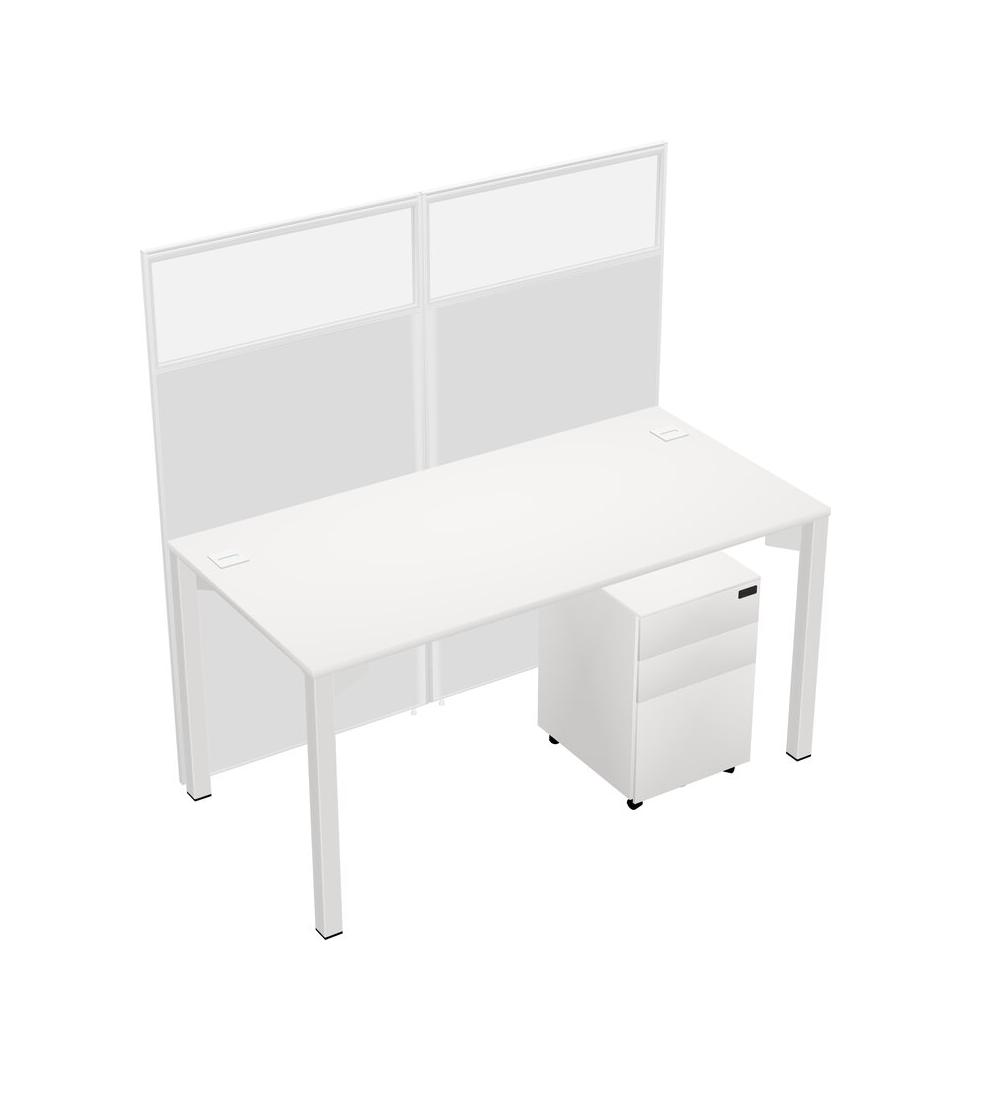 White Shared Rectangular Office Cubicle Panel System With Mobile Drawers For 1 Persons