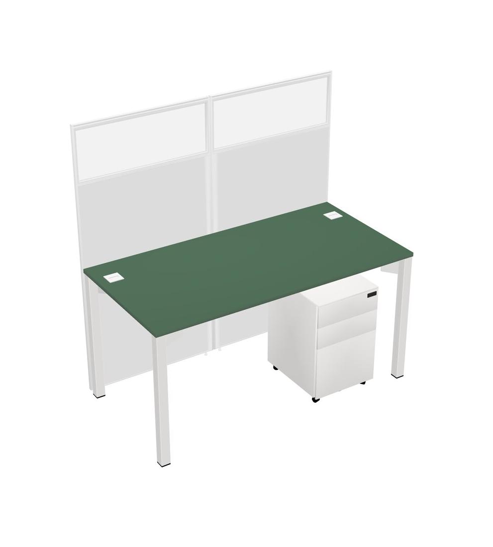 Green Shared Rectangular Office Cubicle Panel System With Mobile Drawers For 1 Persons