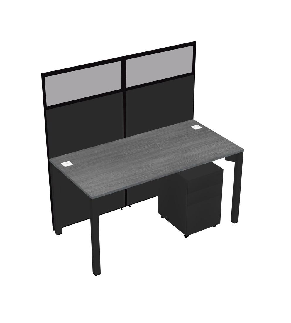 Grey Shared Rectangular Office Cubicle Panel System With Mobile Drawers For 1 Persons
