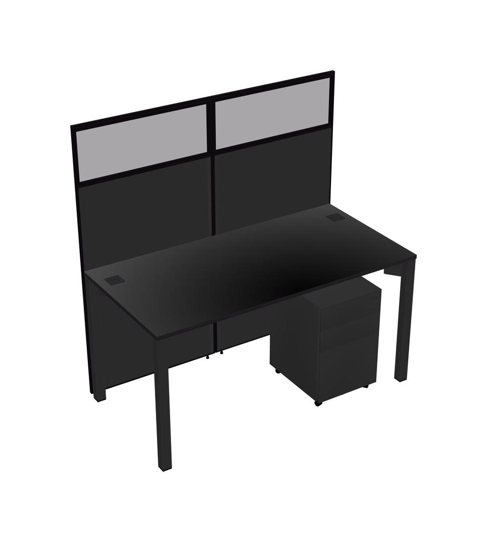 Black Shared Rectangular Office Cubicle Panel System With Mobile Drawers For 1 Persons