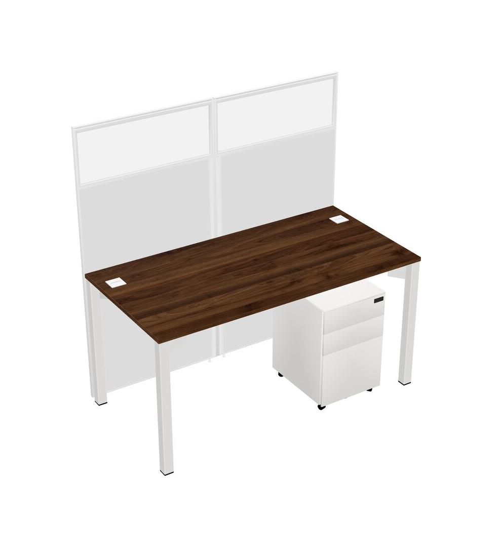 Columbia Walnut Shared Rectangular Office Cubicle Panel System With Mobile Drawers For 1 Persons