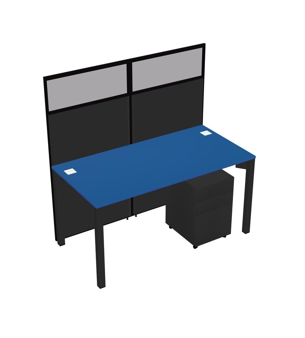 Prism Blue Shared Rectangular Office Cubicle Panel System With Mobile Drawers For 1 Persons