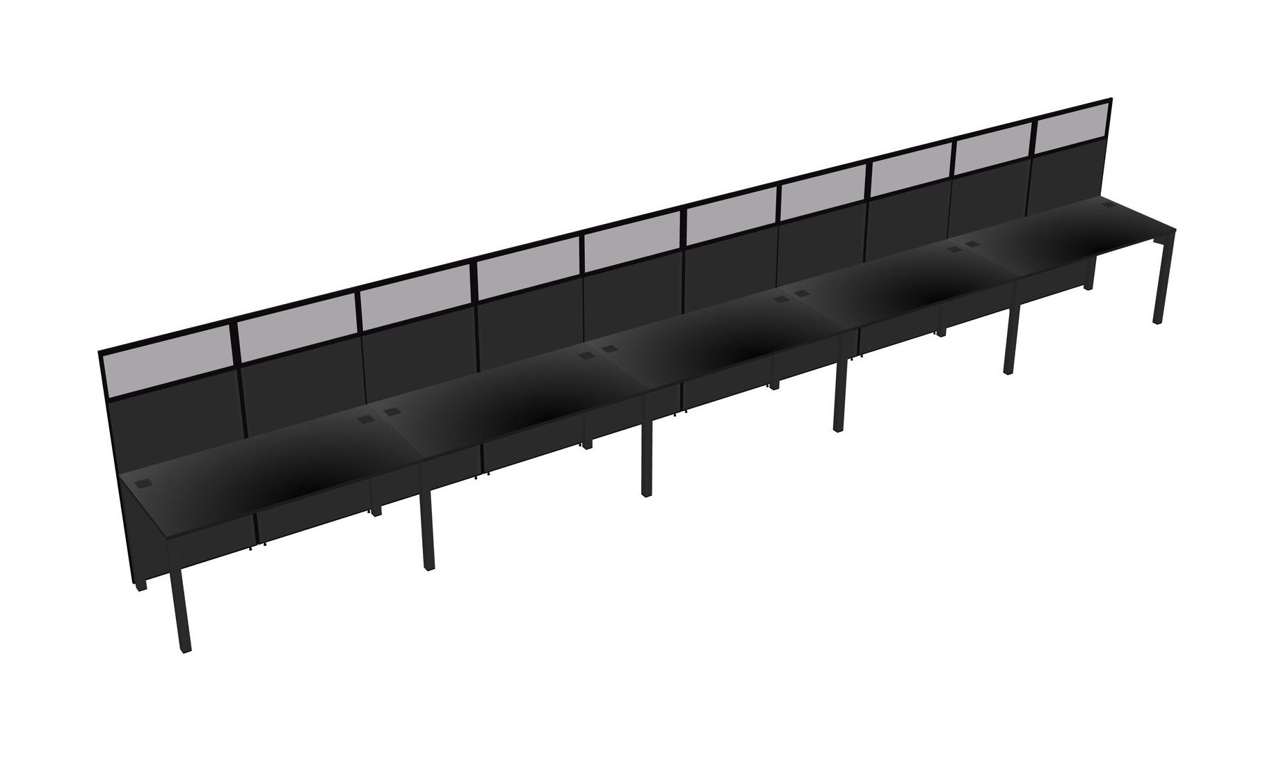 Black Shared Rectangular Office Cubicle Panel System For 5 Persons