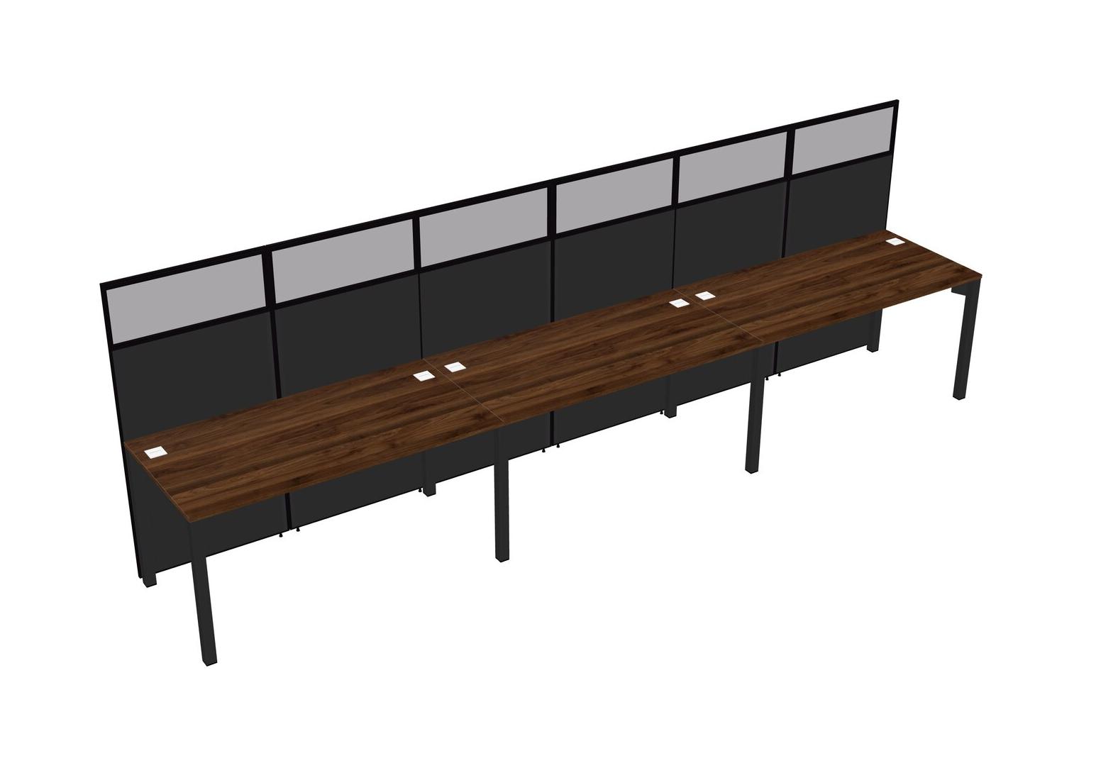 Columbia Walnut Shared Rectangular Office Cubicle Panel System For 3 Persons