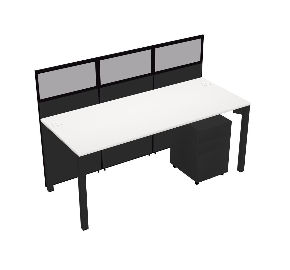 White Shared Rectangular Office Cubicle Panel System With Mobile Drawers For 1 Persons