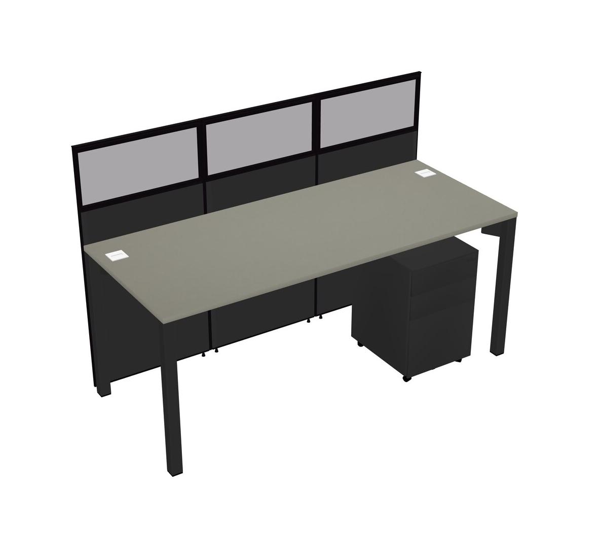 Grey Shadows Shared Rectangular Office Cubicle Panel System With Mobile Drawers For 1 Persons