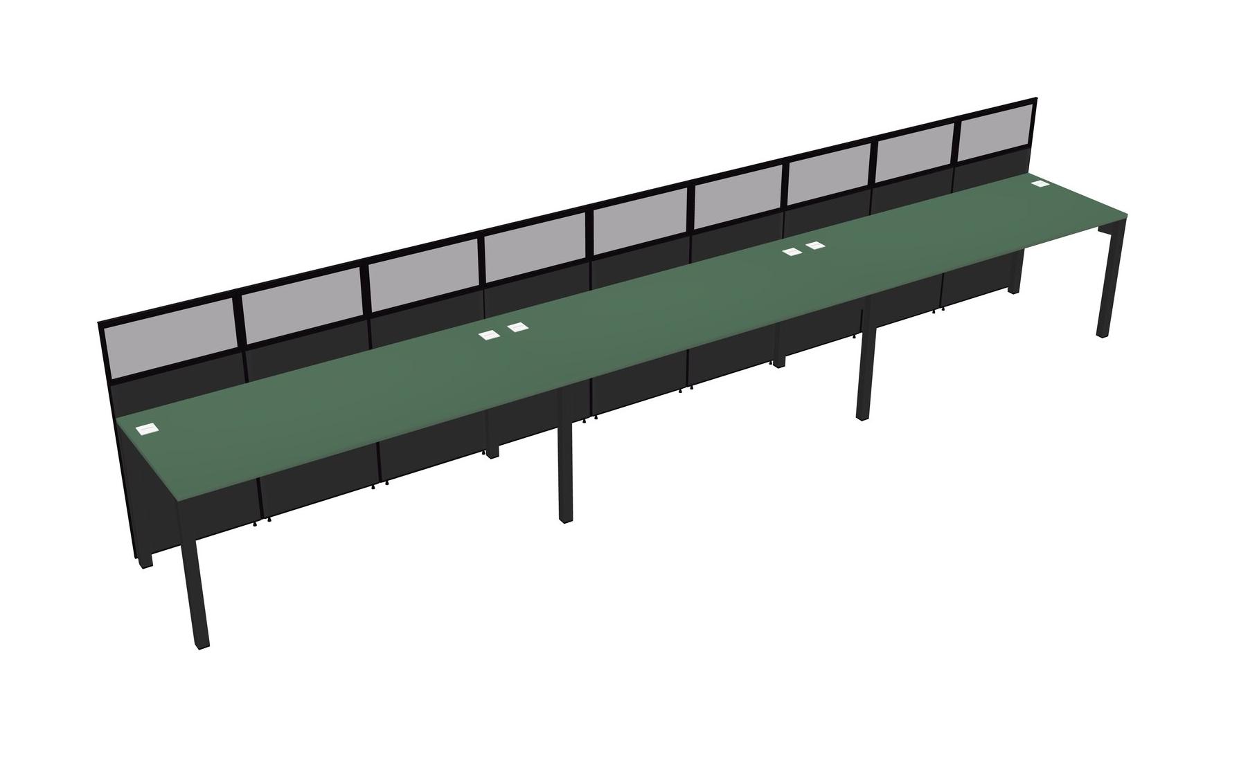 Green Shared Rectangular Office Cubicle Panel System For 3 Persons