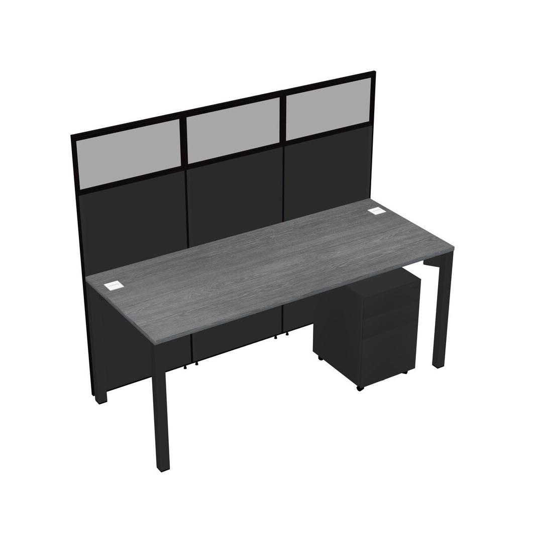 Grey Shared Rectangular Office Cubicle Panel System With Mobile Drawers For 1 Persons