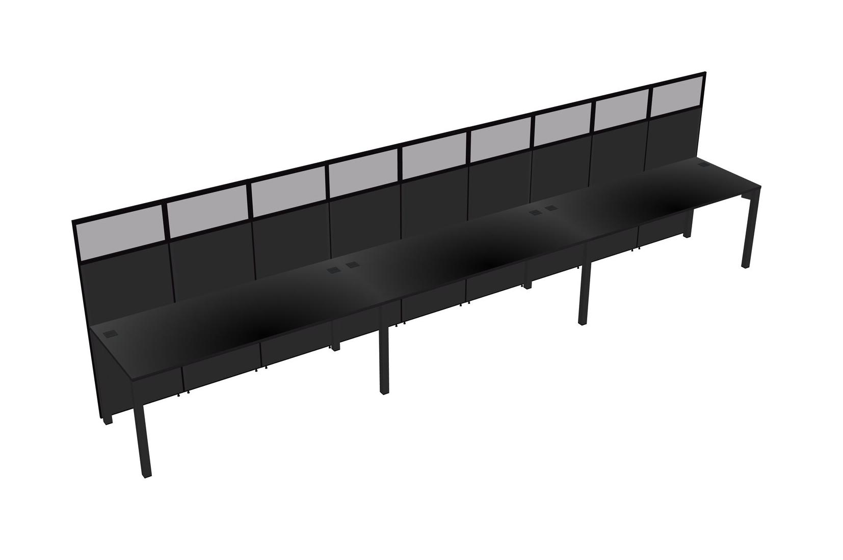 Black Shared Rectangular Office Cubicle Panel System For 3 Persons