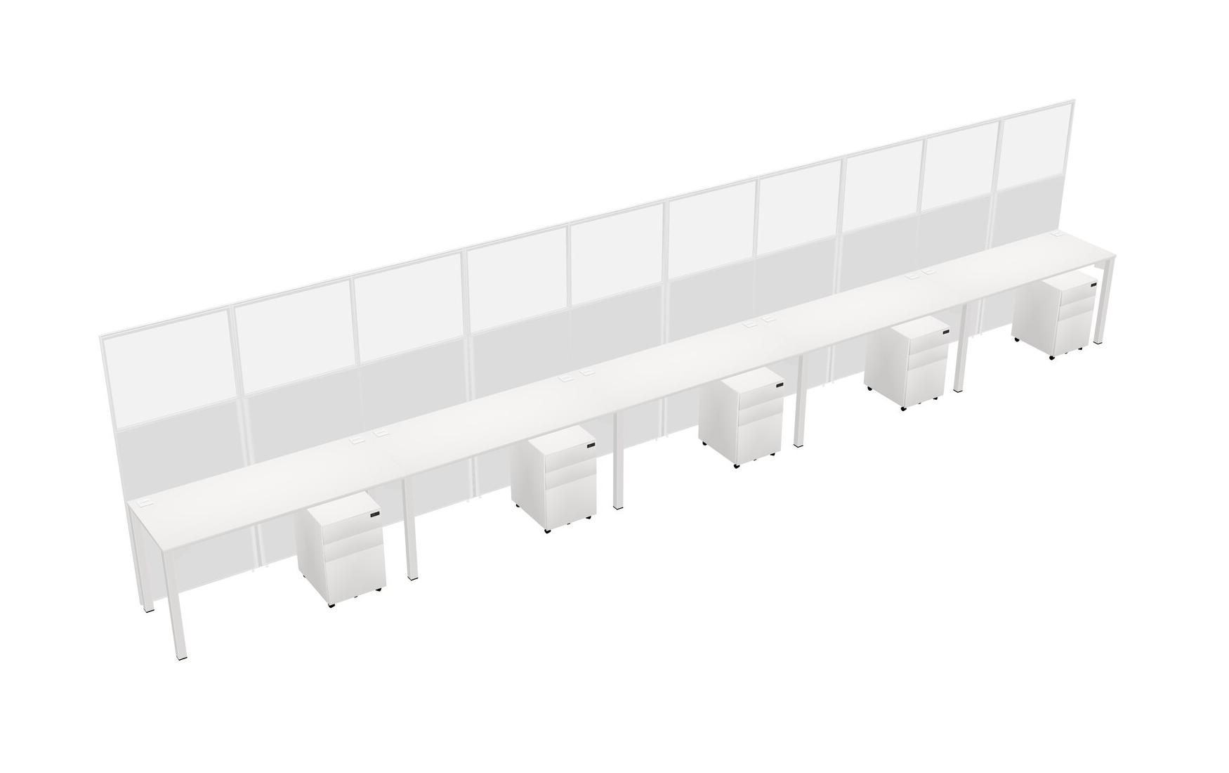 White Shared Rectangular Office Cubicle Panel System With Mobile Drawers For 5 Persons