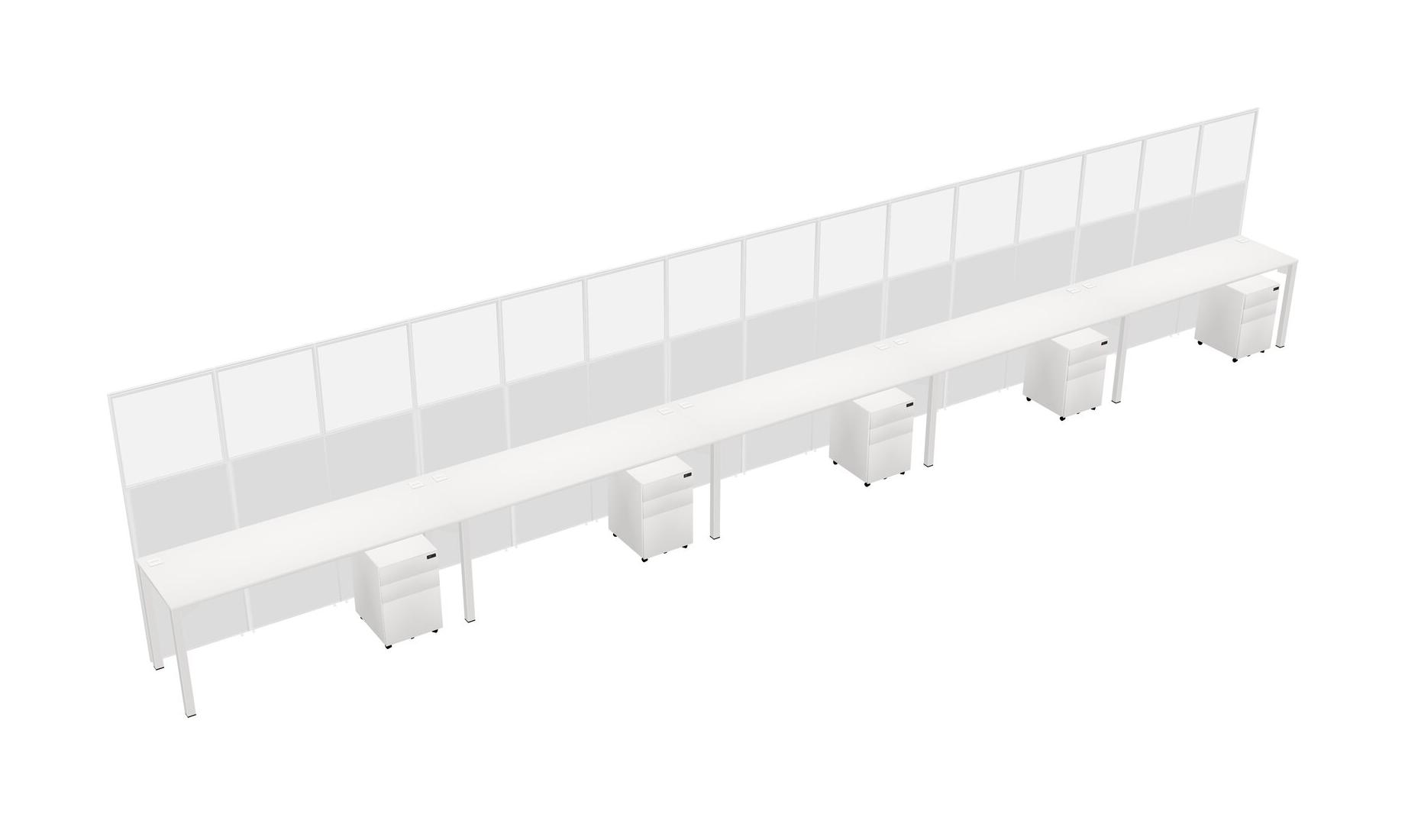 White Shared Rectangular Office Cubicle Panel System With Mobile Drawers For 5 Persons