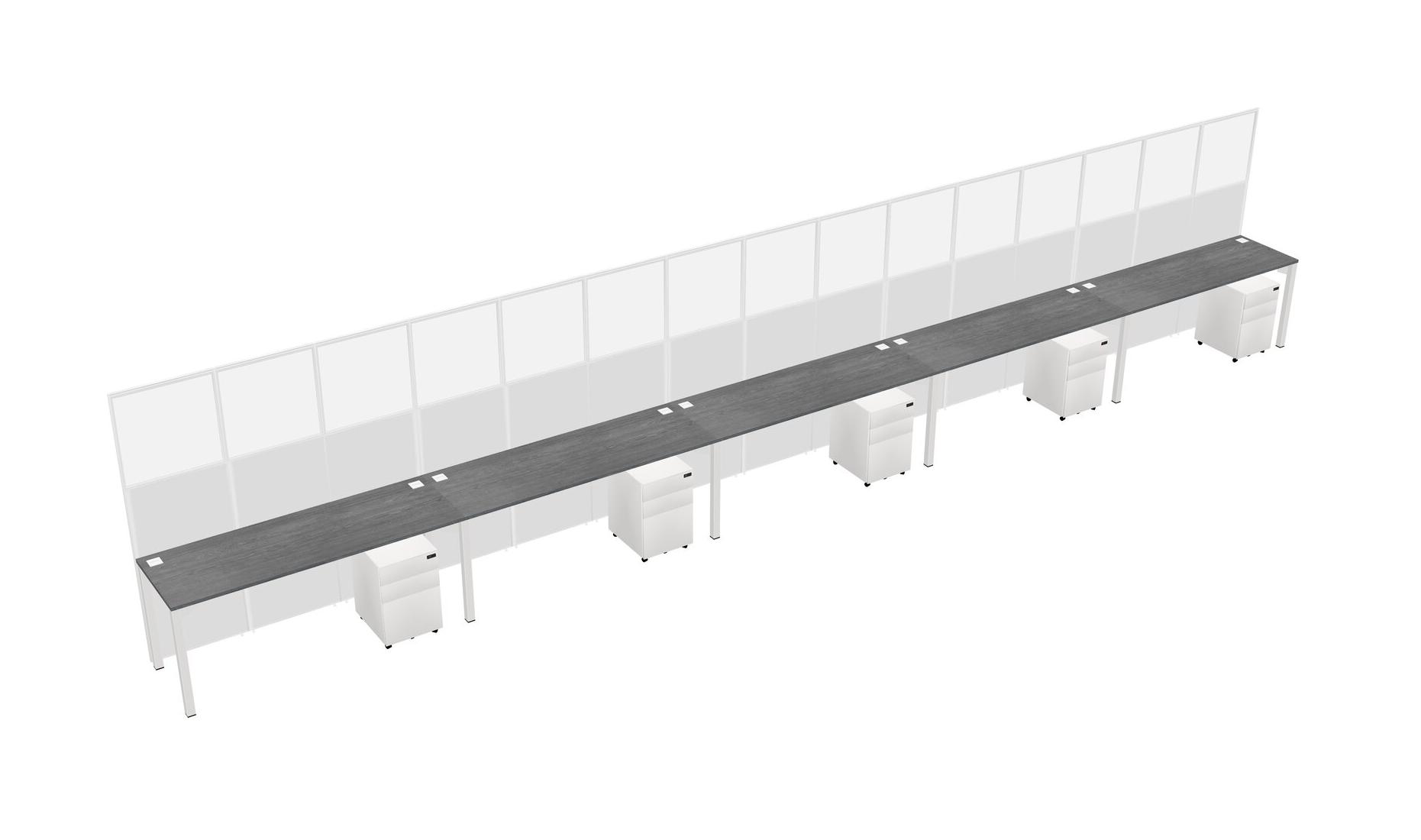 Grey Shared Rectangular Office Cubicle Panel System With Mobile Drawers For 5 Persons
