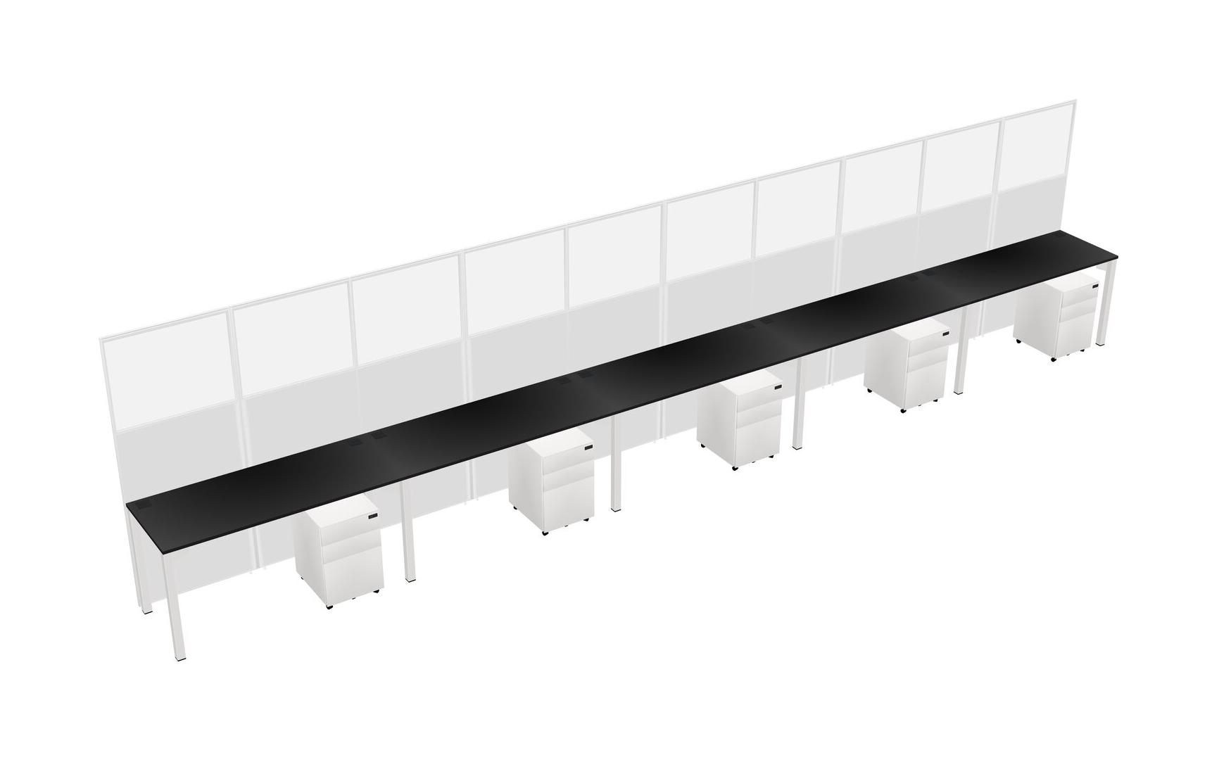 Black Shared Rectangular Office Cubicle Panel System With Mobile Drawers For 5 Persons