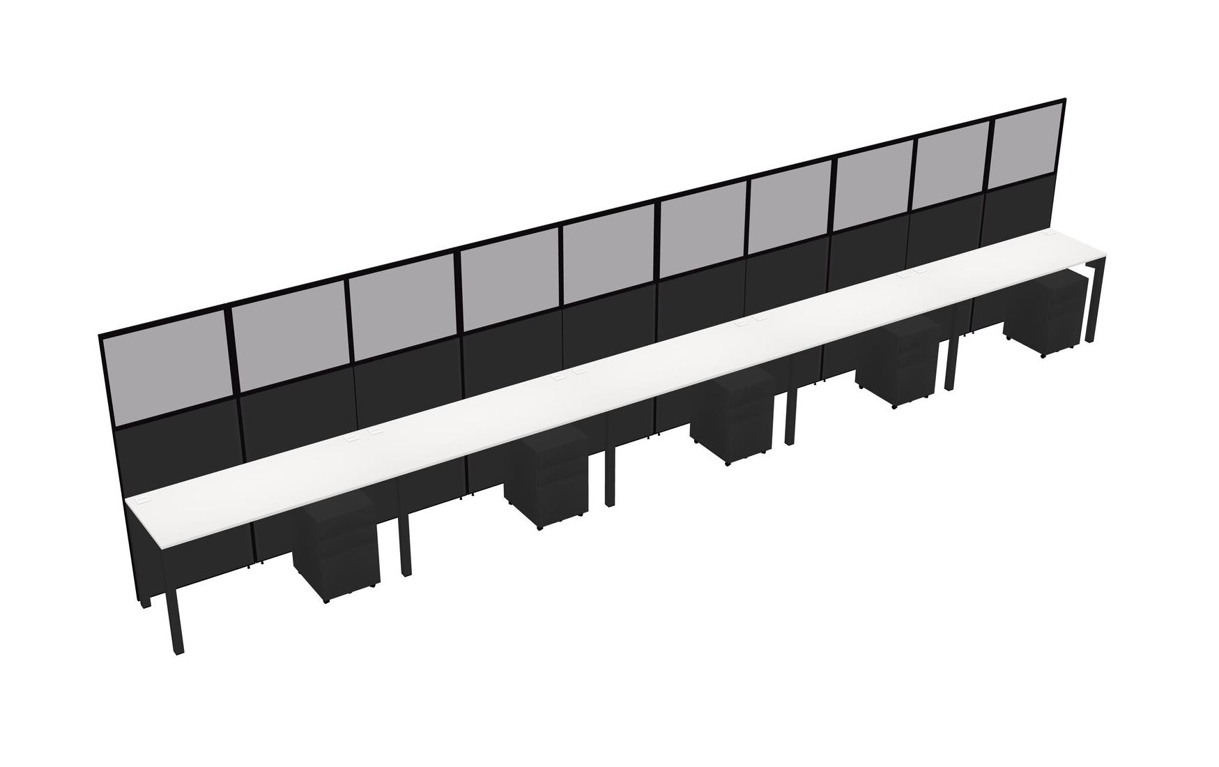 White Shared Rectangular Office Cubicle Panel System With Mobile Drawers For 5 Persons
