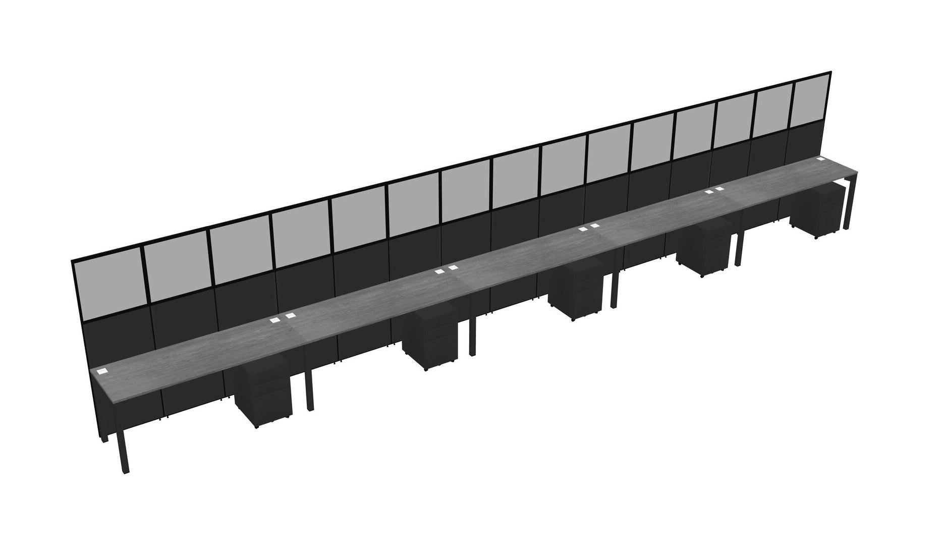 Grey Shared Rectangular Office Cubicle Panel System With Mobile Drawers For 5 Persons