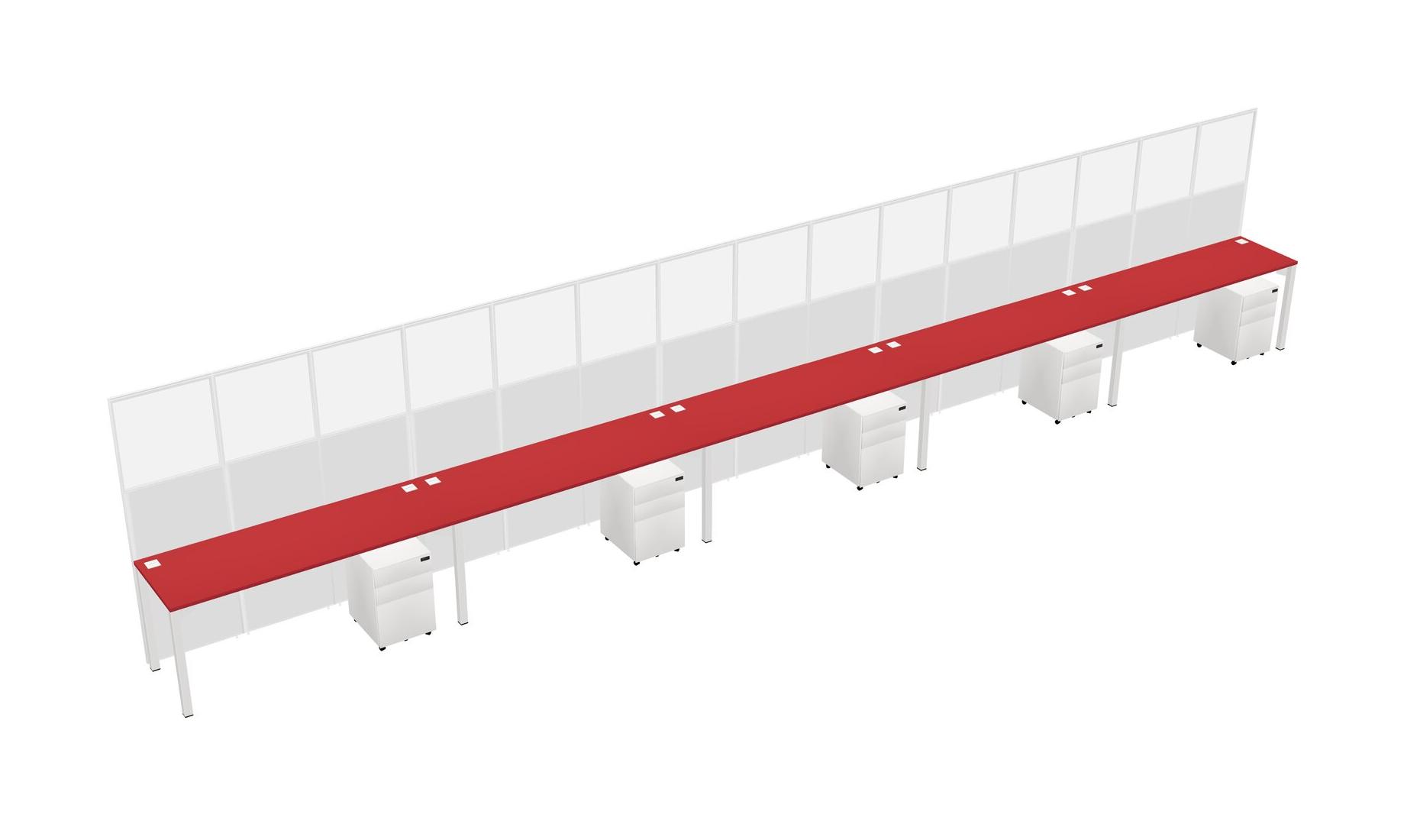 Prism Red Shared Rectangular Office Cubicle Panel System With Mobile Drawers For 5 Persons