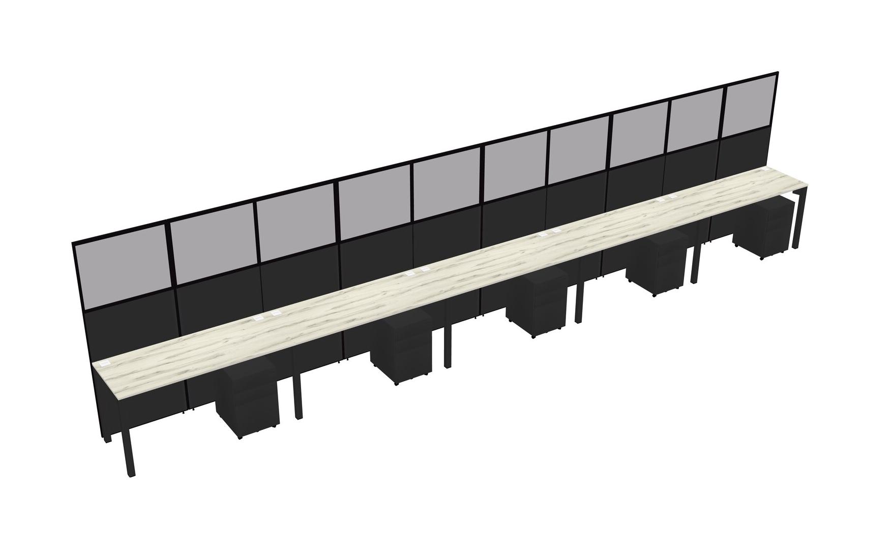 Heinne Holz Shared Rectangular Office Cubicle Panel System With Mobile Drawers For 5 Persons