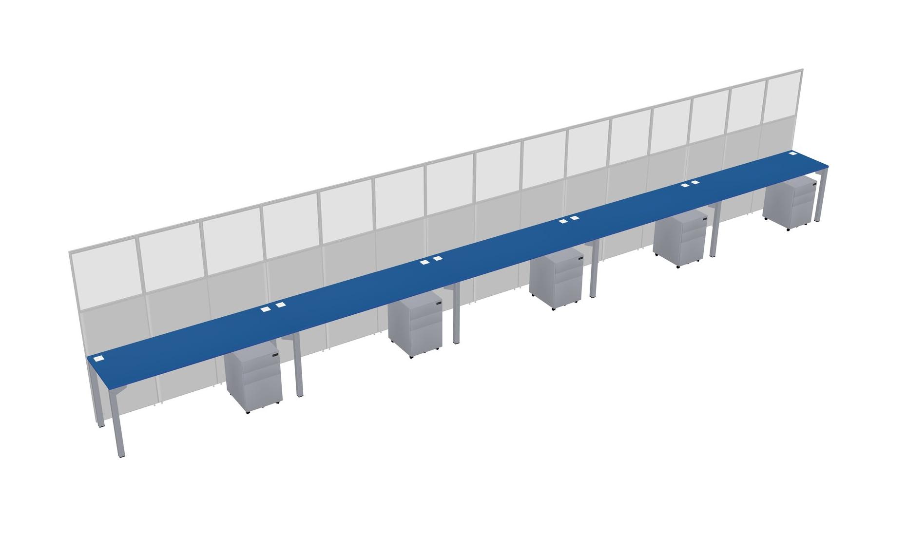 Prism Blue Shared Rectangular Office Cubicle Panel System With Mobile Drawers For 5 Persons