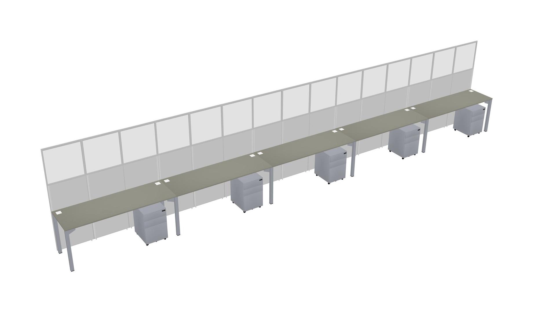Grey Shadows Shared Rectangular Office Cubicle Panel System With Mobile Drawers For 5 Persons