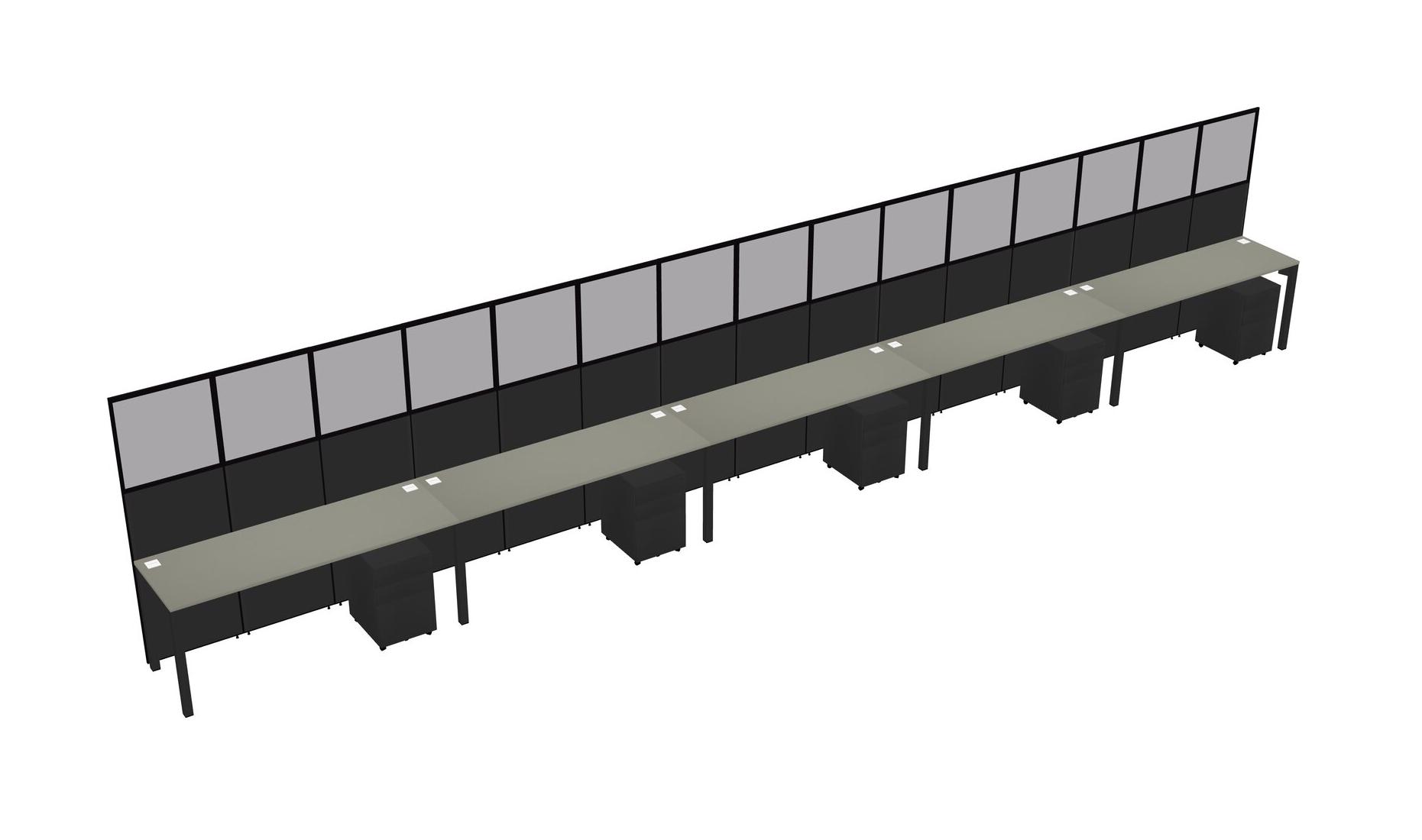 Grey Shadows Shared Rectangular Office Cubicle Panel System With Mobile Drawers For 5 Persons