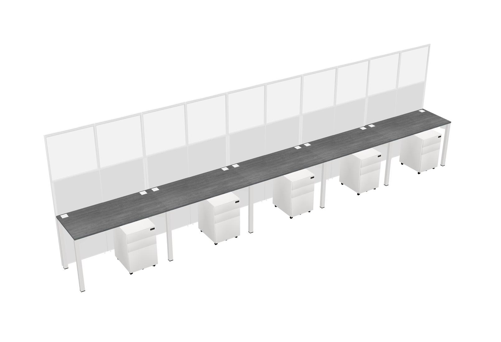 Grey Shared Rectangular Office Cubicle Panel System With Mobile Drawers For 5 Persons