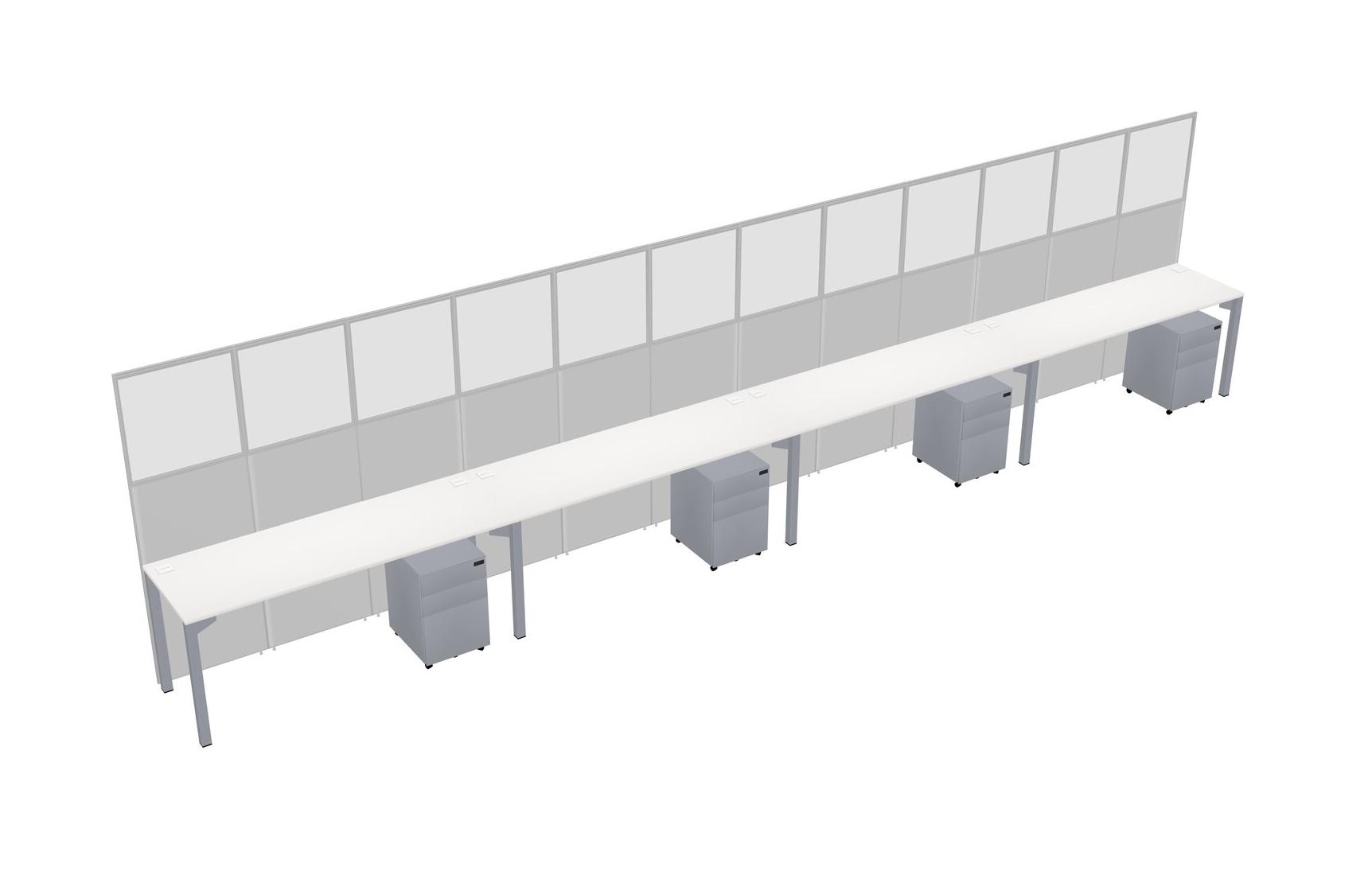 White Shared Rectangular Office Cubicle Panel System With Mobile Drawers For 4 Persons