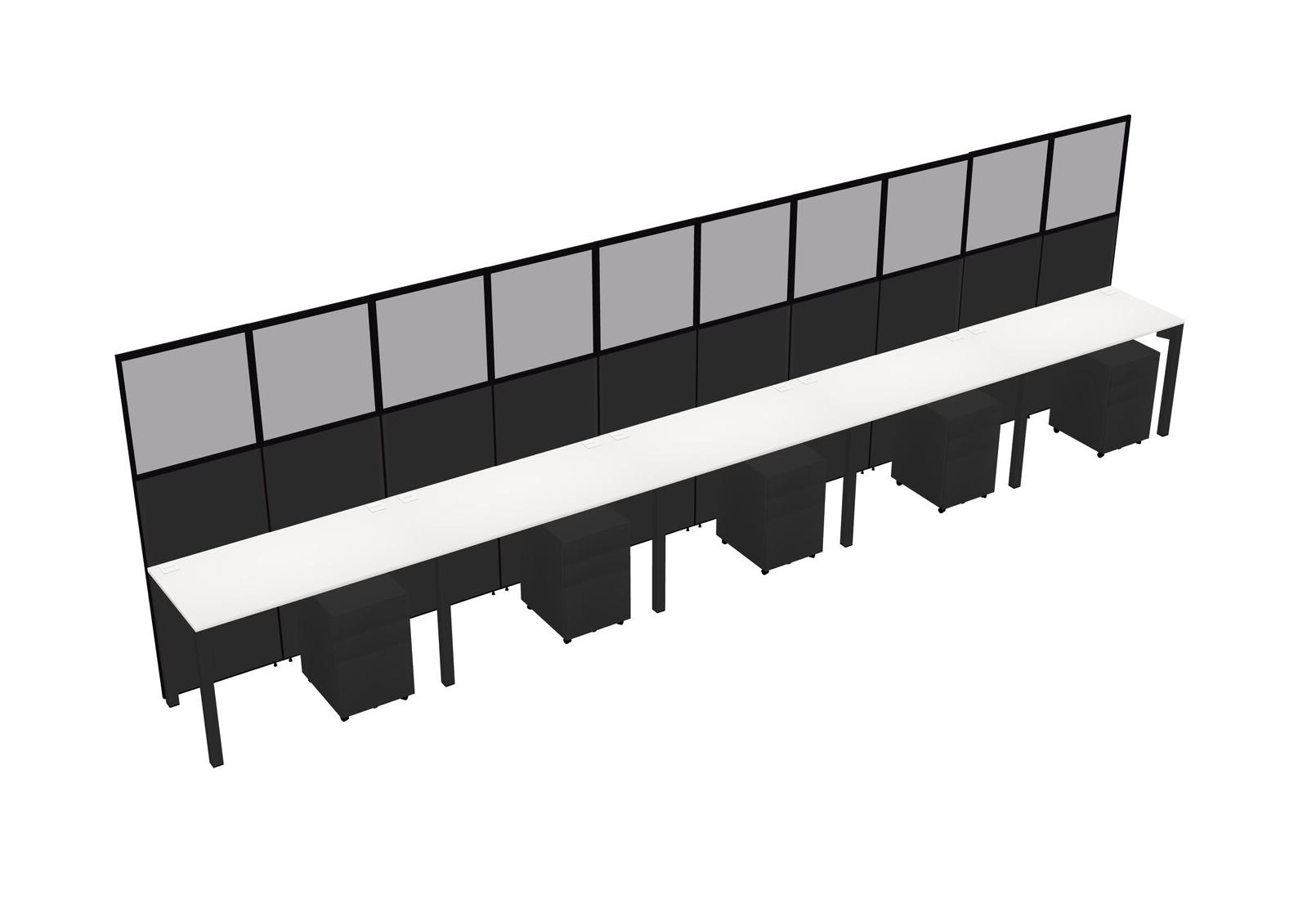 White Shared Rectangular Office Cubicle Panel System With Mobile Drawers For 5 Persons