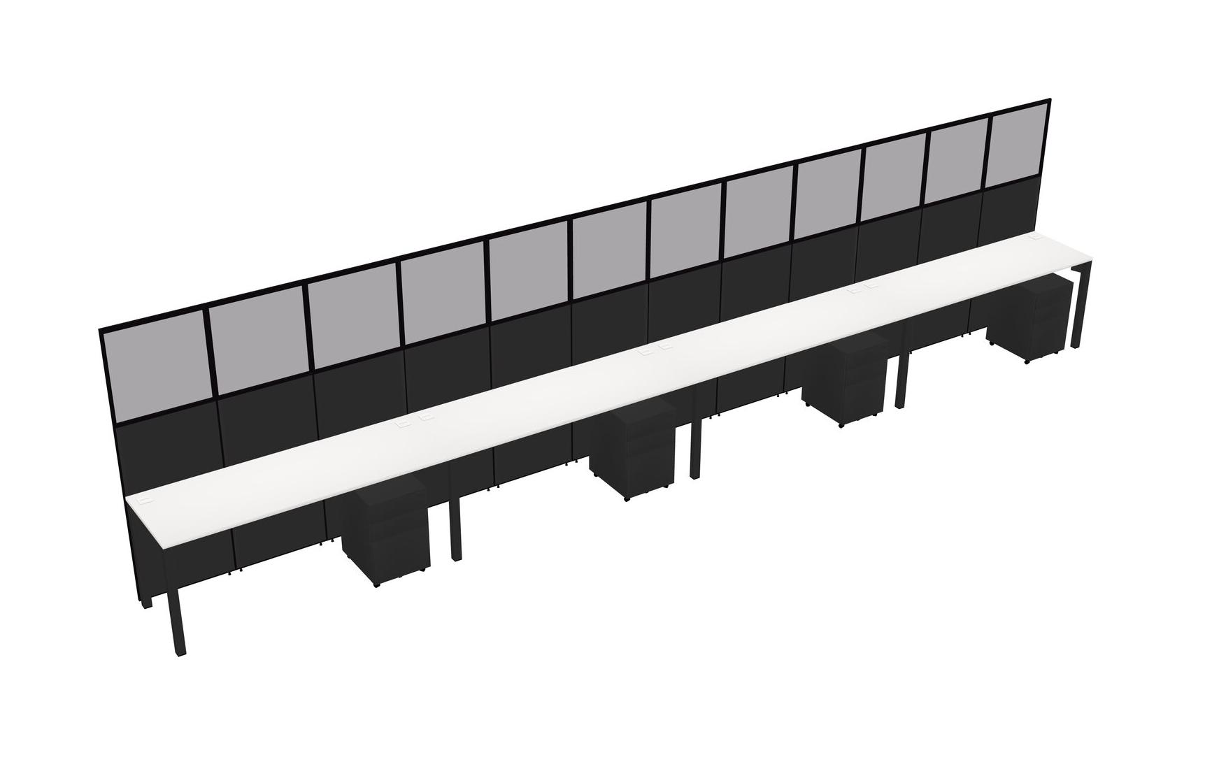 White Shared Rectangular Office Cubicle Panel System With Mobile Drawers For 4 Persons