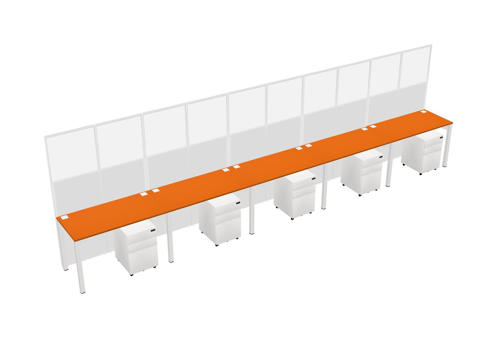 Orange Shared Rectangular Office Cubicle Panel System With Mobile Drawers For 5 Persons