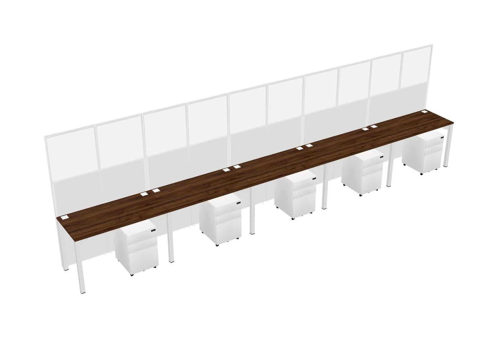 Columbia Walnut Shared Rectangular Office Cubicle Panel System With Mobile Drawers For 5 Persons