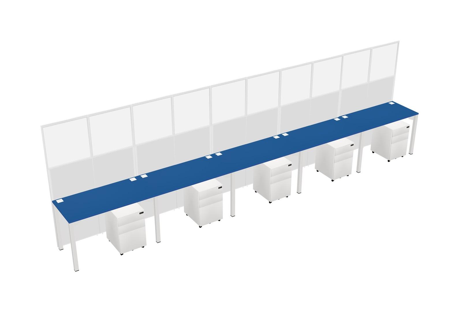 Prism Blue Shared Rectangular Office Cubicle Panel System With Mobile Drawers For 5 Persons