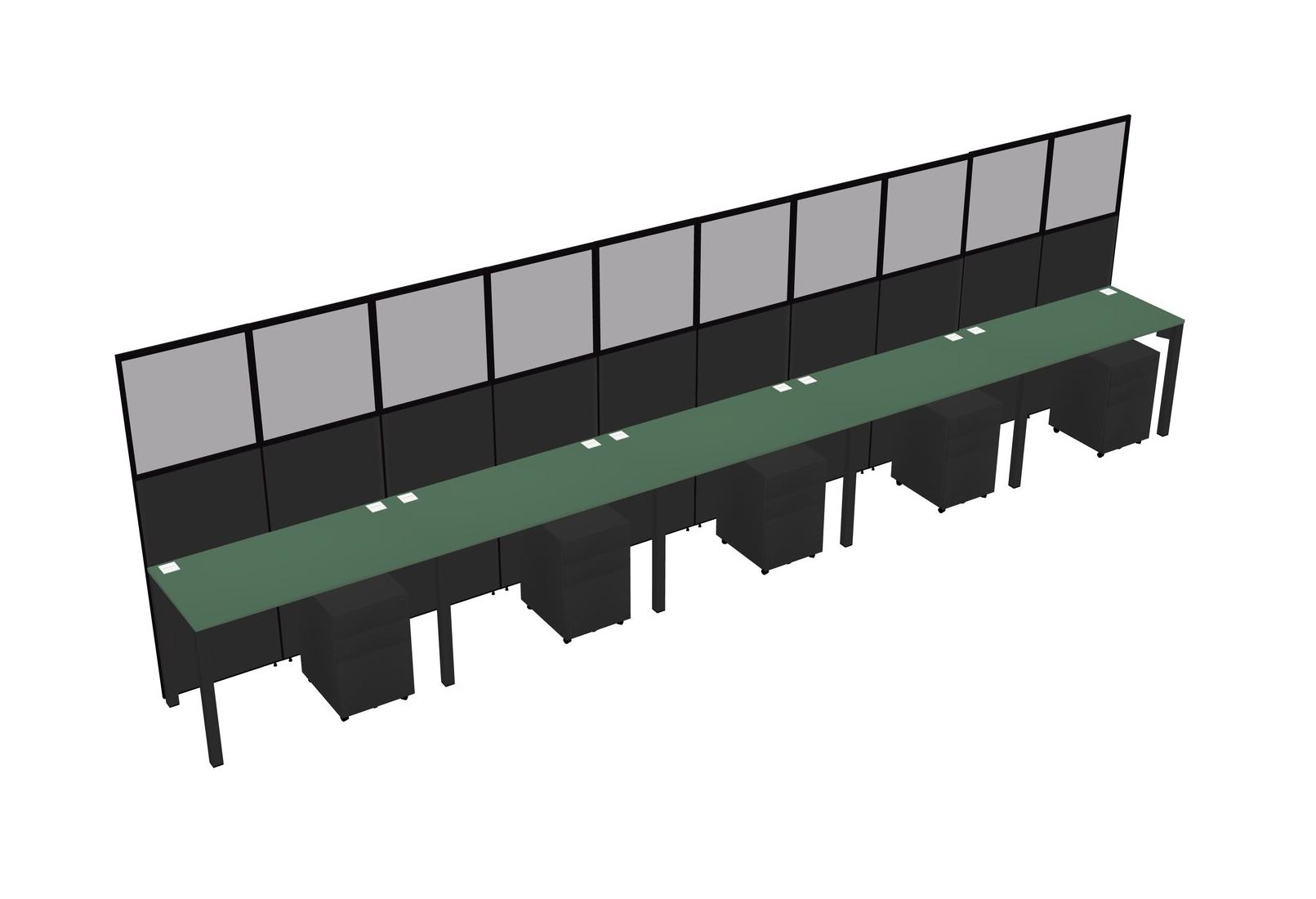Green Shared Rectangular Office Cubicle Panel System With Mobile Drawers For 5 Persons