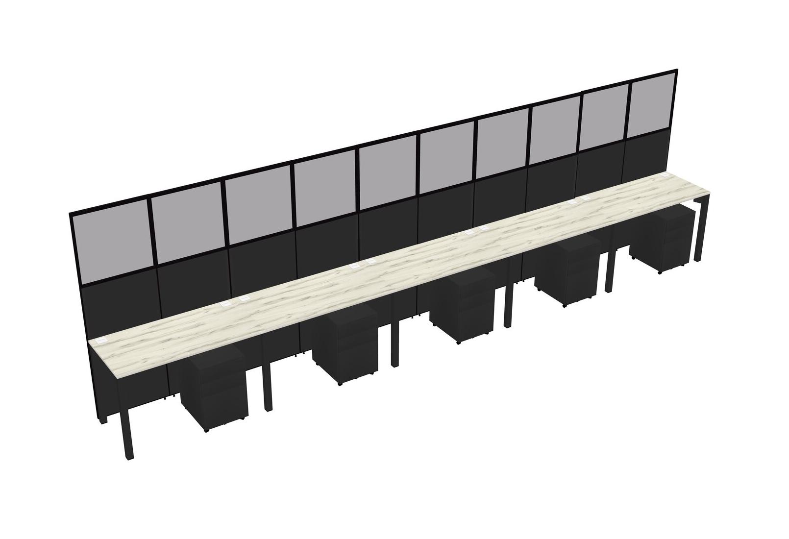 Heinne Holz Shared Rectangular Office Cubicle Panel System With Mobile Drawers For 5 Persons