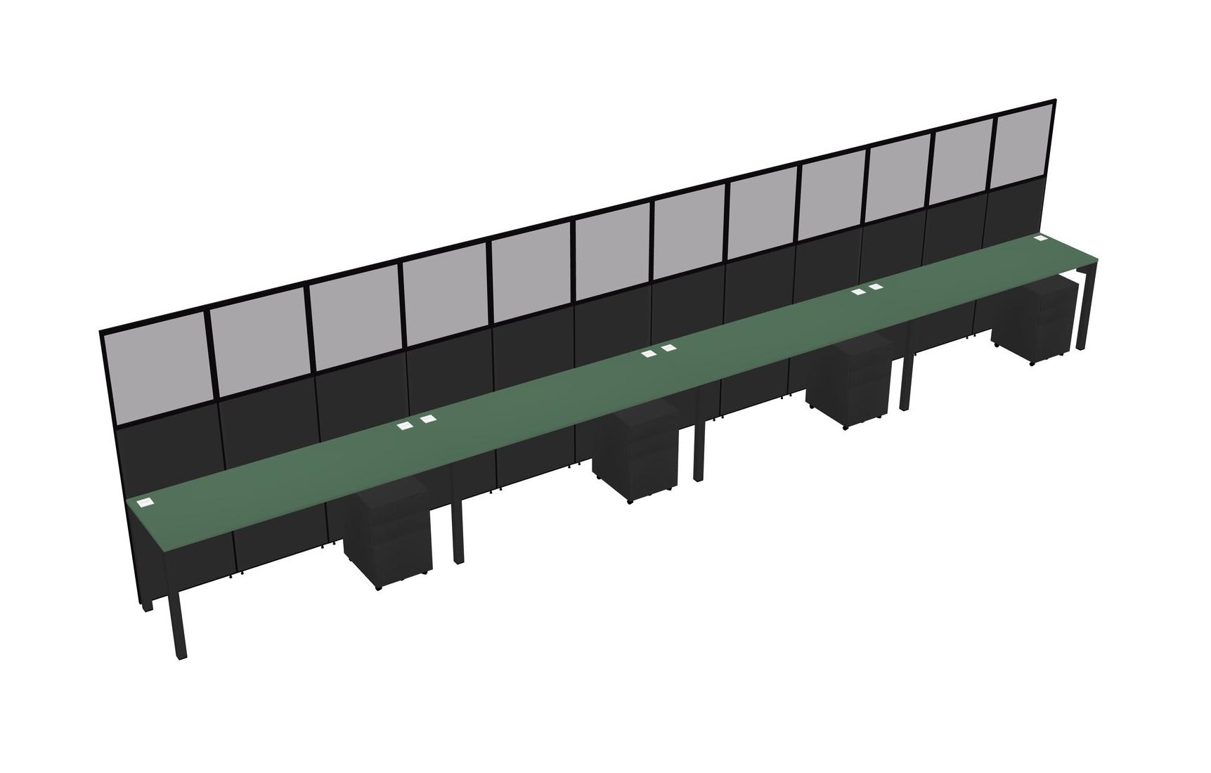 Green Shared Rectangular Office Cubicle Panel System With Mobile Drawers For 4 Persons