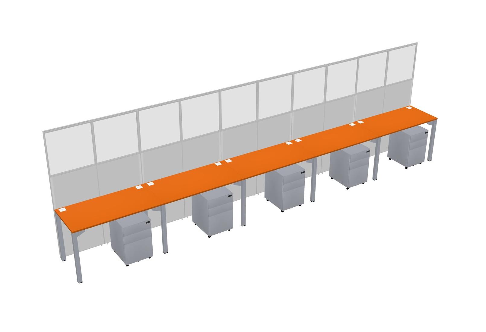 Orange Shared Rectangular Office Cubicle Panel System With Mobile Drawers For 5 Persons