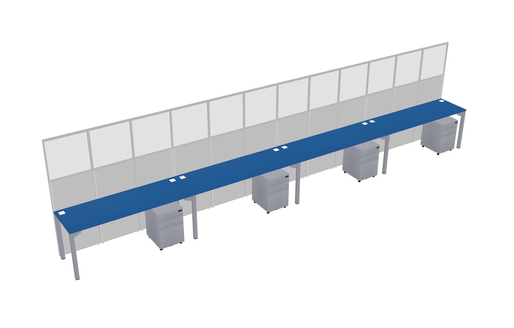 Prism Blue Shared Rectangular Office Cubicle Panel System With Mobile Drawers For 4 Persons