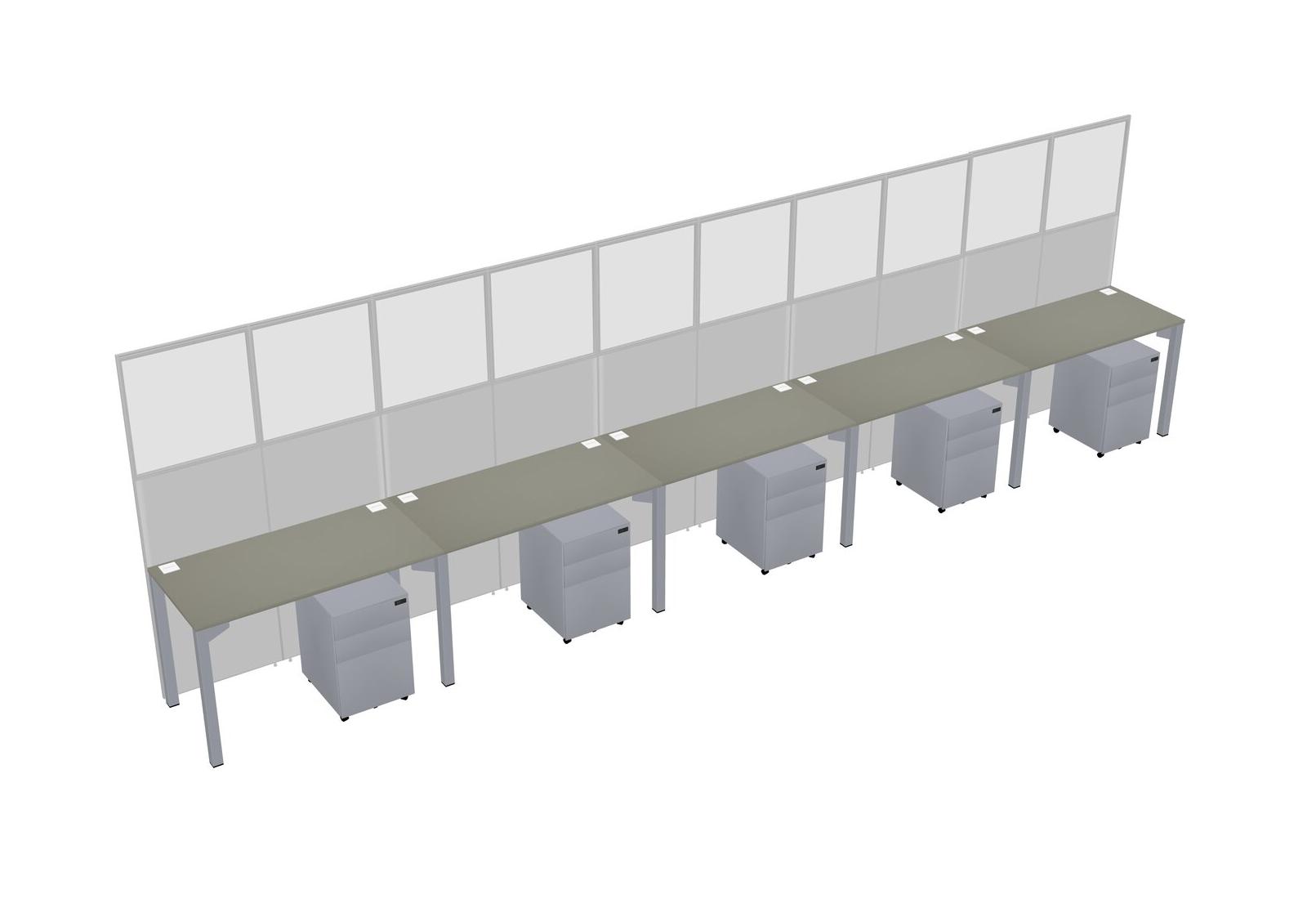 Grey Shadows Shared Rectangular Office Cubicle Panel System With Mobile Drawers For 5 Persons