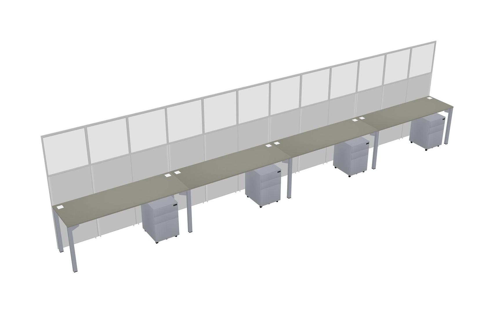 Grey Shadows Shared Rectangular Office Cubicle Panel System With Mobile Drawers For 4 Persons