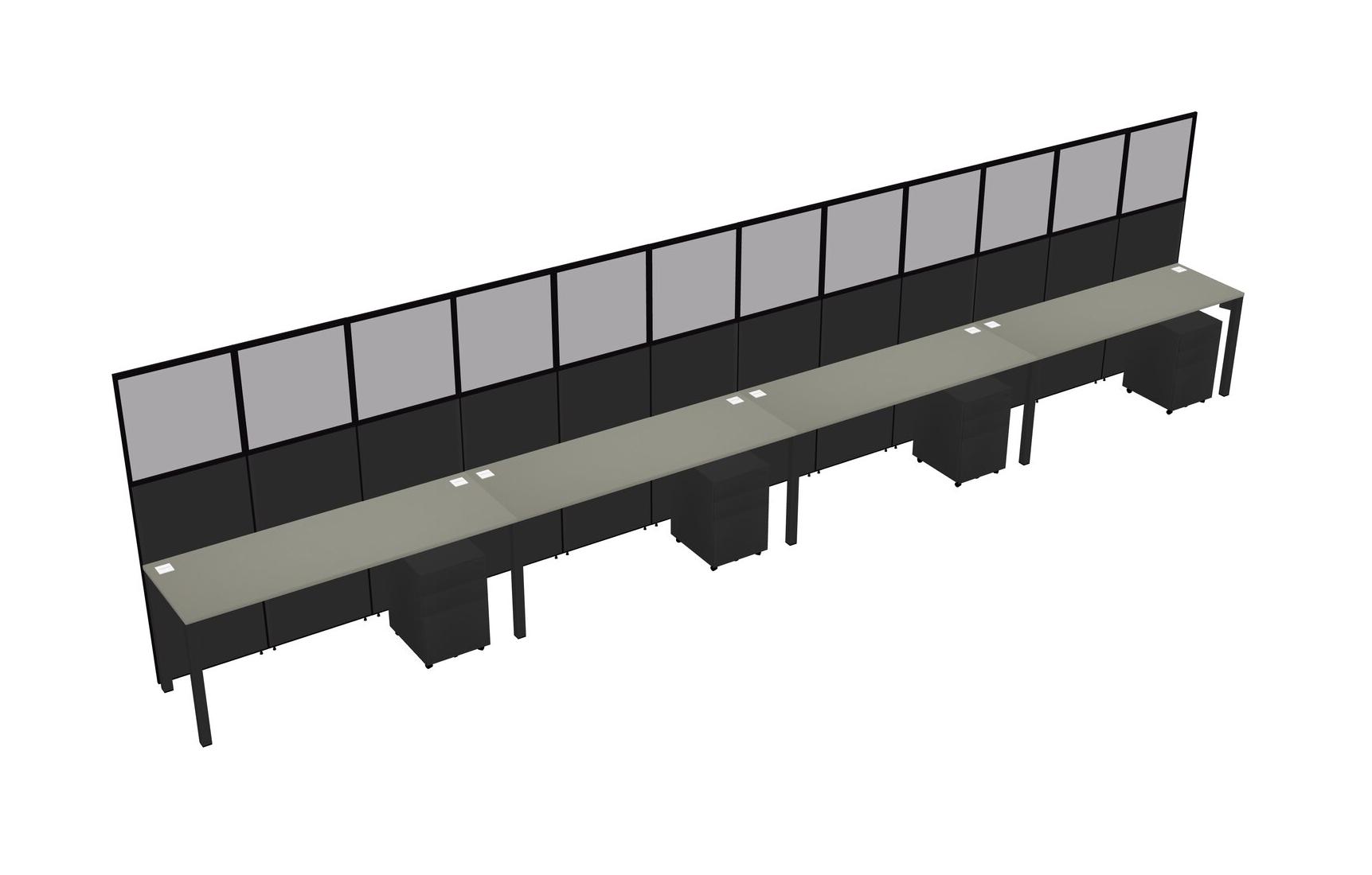 Grey Shadows Shared Rectangular Office Cubicle Panel System With Mobile Drawers For 4 Persons