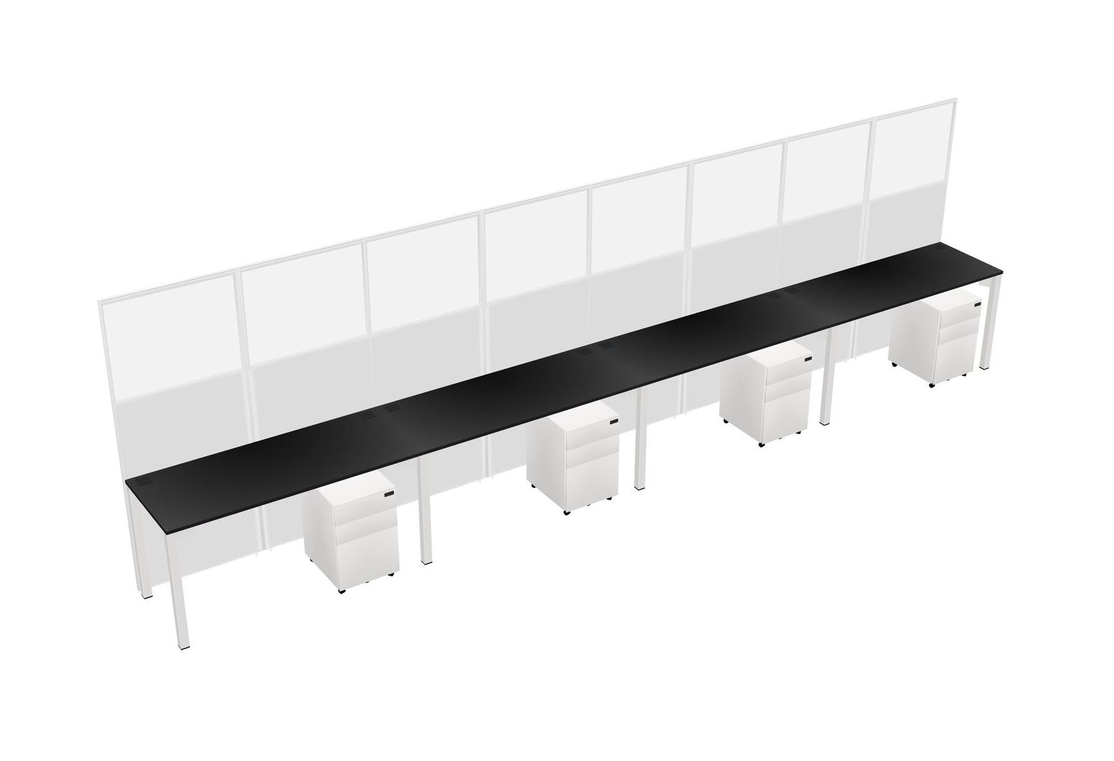 Black Shared Rectangular Office Cubicle Panel System With Mobile Drawers For 4 Persons