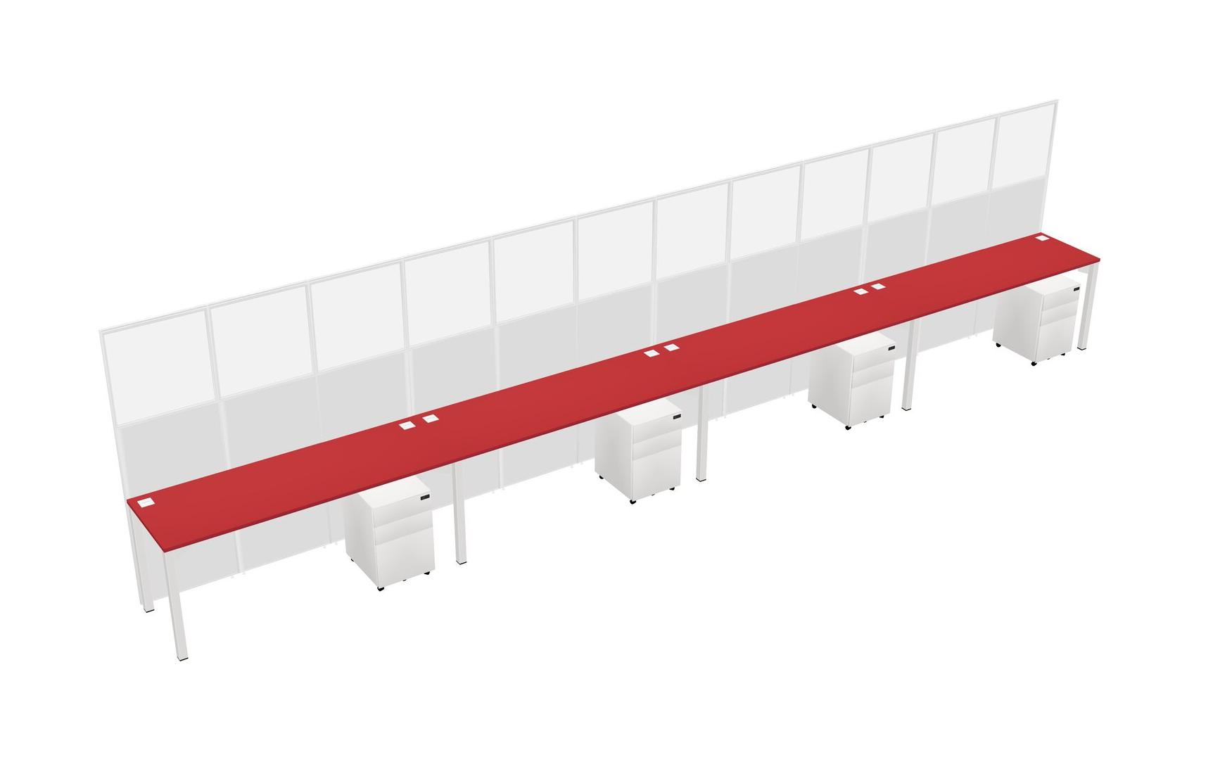 Prism Red Shared Rectangular Office Cubicle Panel System With Mobile Drawers For 4 Persons