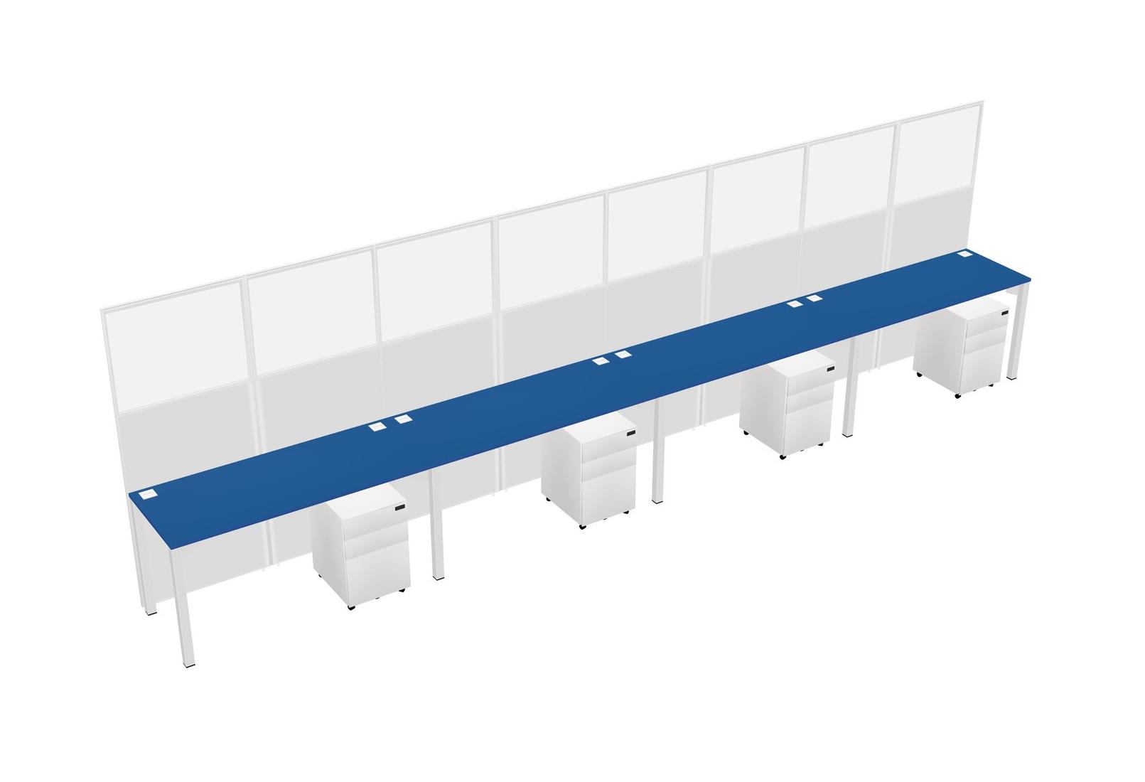 Prism Blue Shared Rectangular Office Cubicle Panel System With Mobile Drawers For 4 Persons