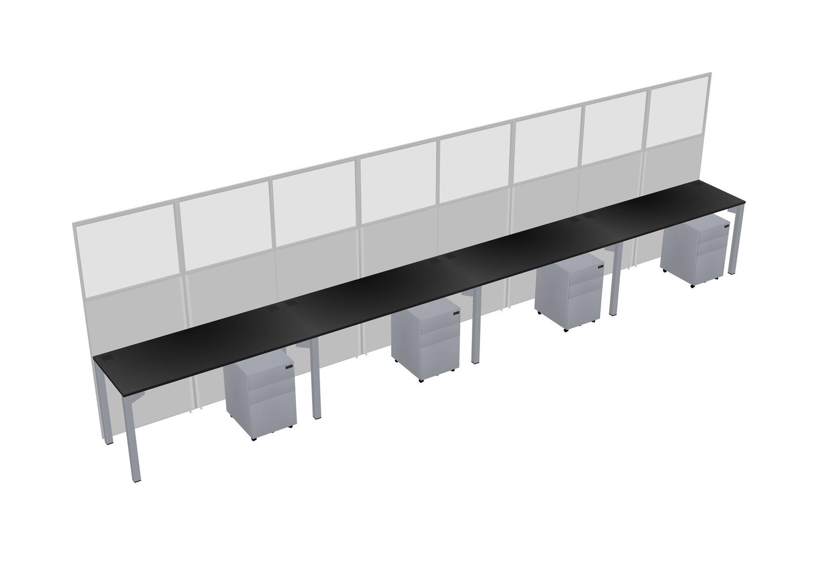 Black Shared Rectangular Office Cubicle Panel System With Mobile Drawers For 4 Persons