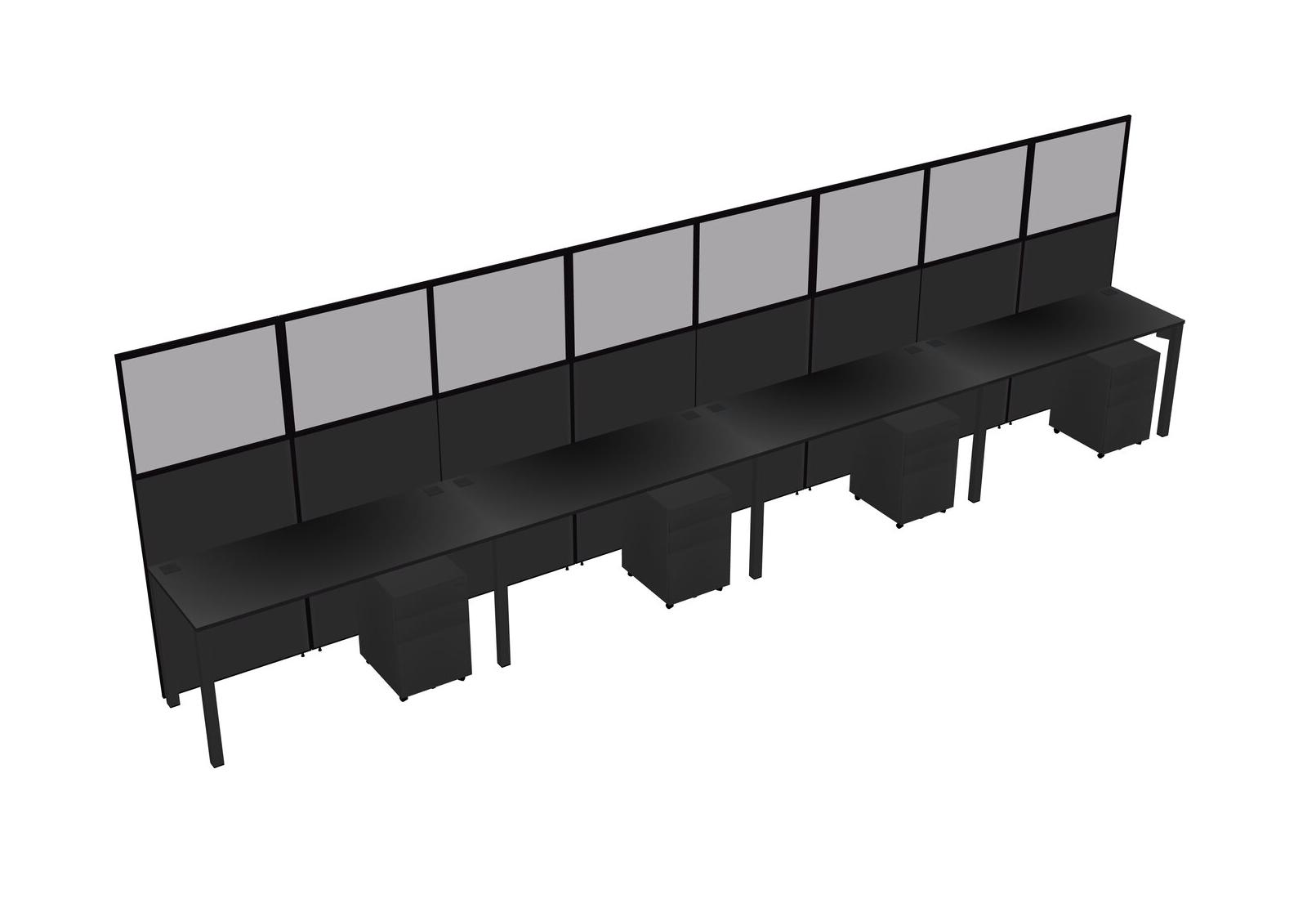 Black Shared Rectangular Office Cubicle Panel System With Mobile Drawers For 4 Persons