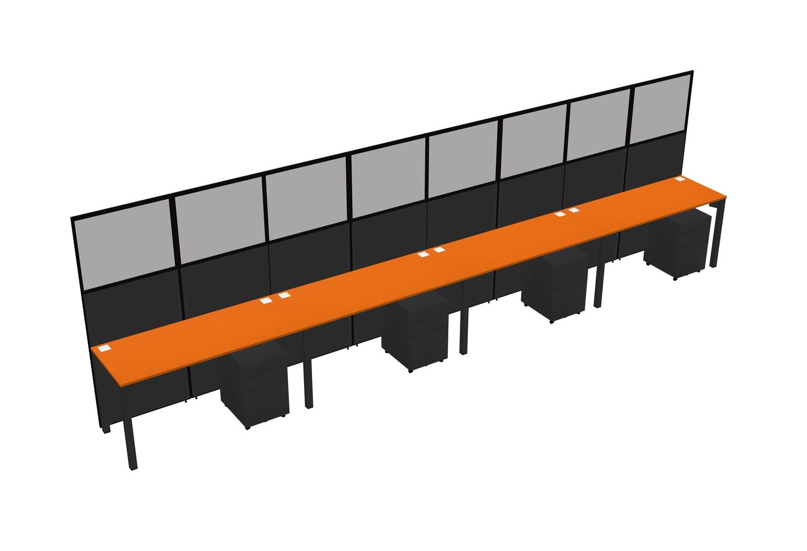 Orange Shared Rectangular Office Cubicle Panel System With Mobile Drawers For 4 Persons
